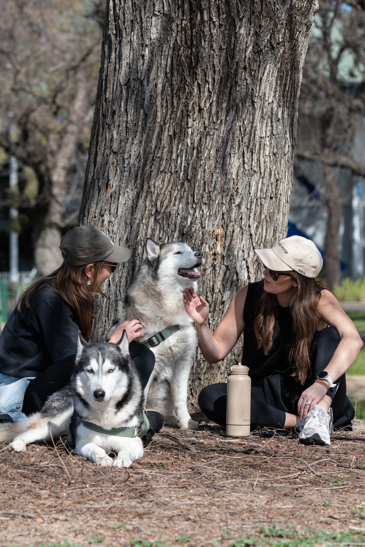 - Outdoor imagery with dogs and people